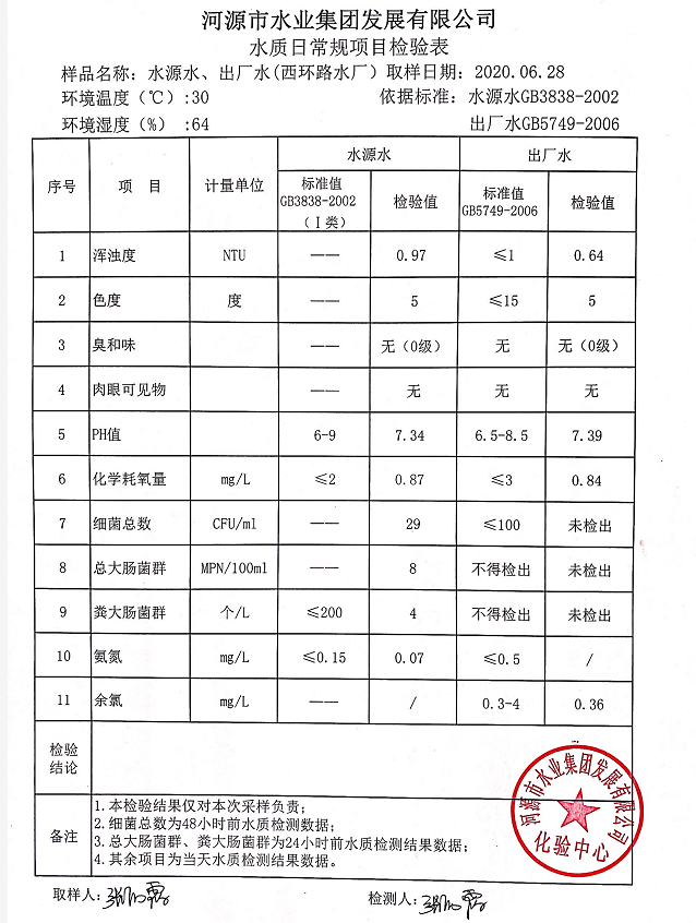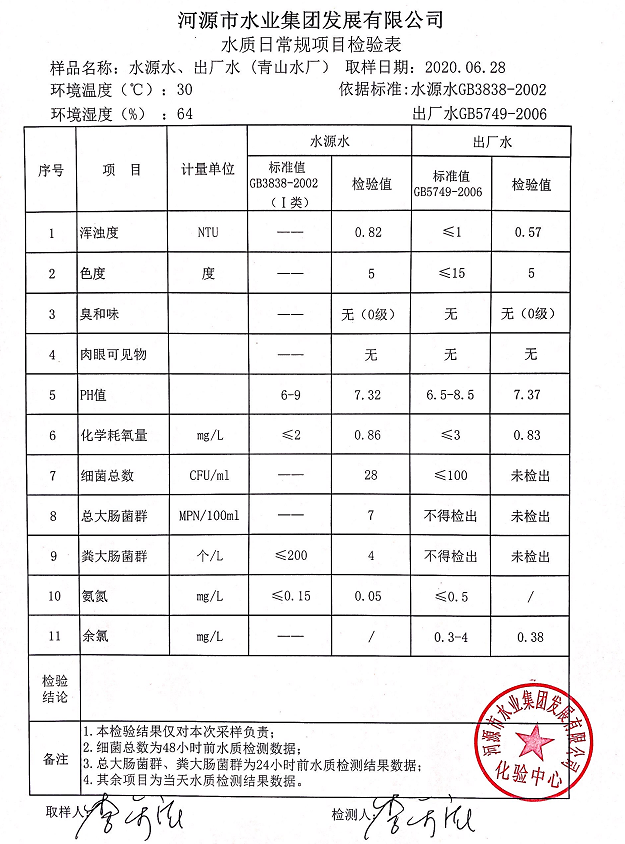 2020年6月28日水質(zhì)檢驗(yàn)報(bào)告