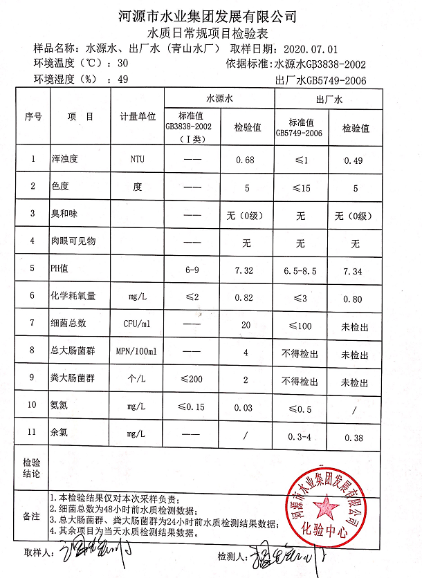 2020年7月1日水質(zhì)檢驗(yàn)報告