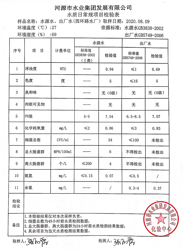 2020年8月9日水質(zhì)檢驗(yàn)報(bào)告
