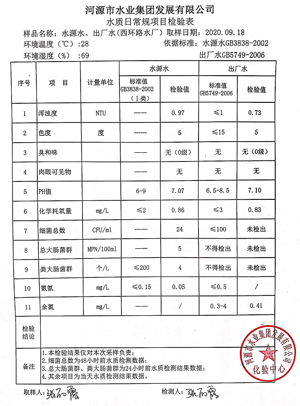 2020年9月18日水質(zhì)檢驗(yàn)報(bào)告