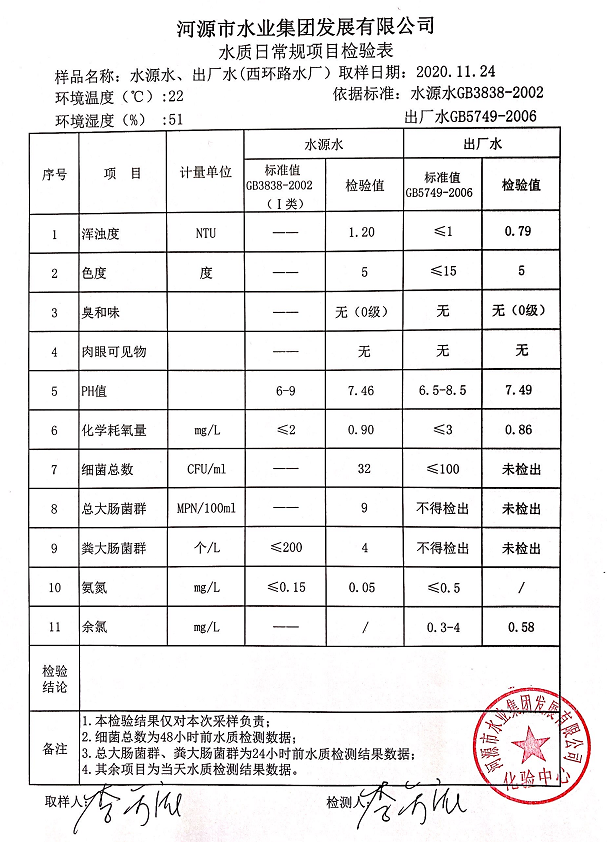 2020年11月24日水質(zhì)檢驗報告
