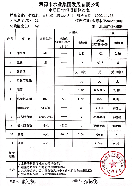 2020年11月25日水質(zhì)檢驗報告