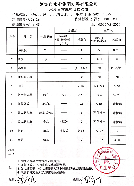 2020年11月29日水質(zhì)檢驗(yàn)報(bào)告