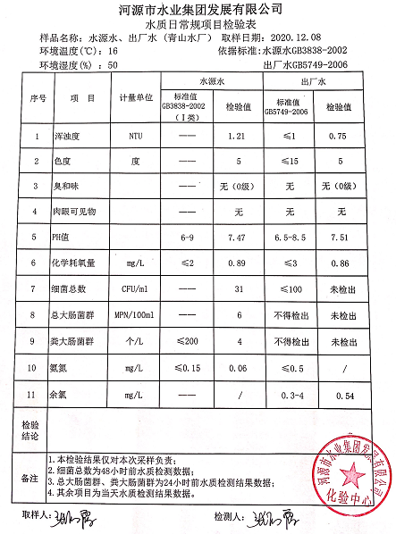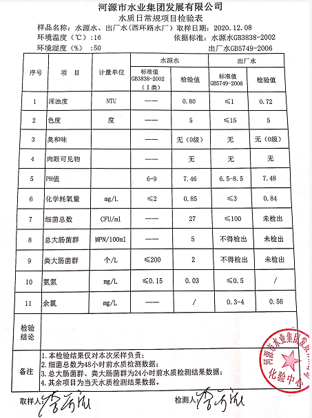 2020年12月8日水質(zhì)檢驗(yàn)報告