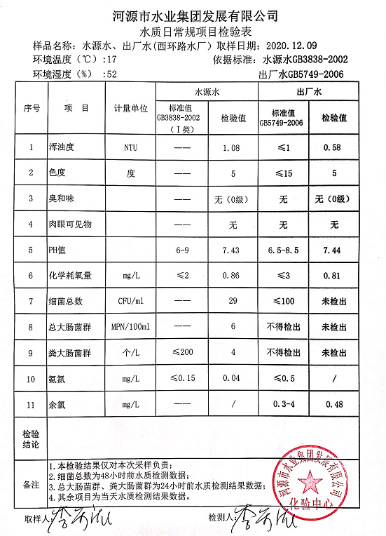 2020年12月9日水質(zhì)檢驗(yàn)報(bào)告