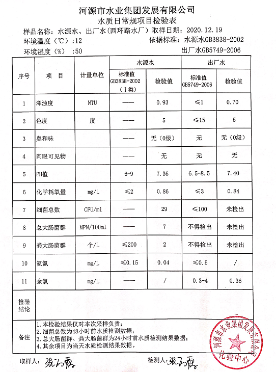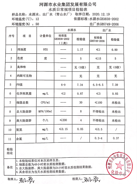 2020年12月19日水質(zhì)檢驗(yàn)報(bào)告
