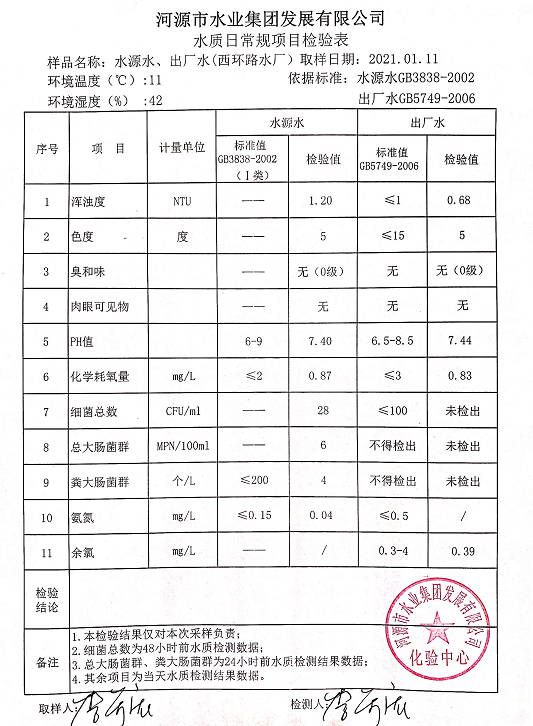 2021年1月11日水質(zhì)檢驗(yàn)報(bào)告