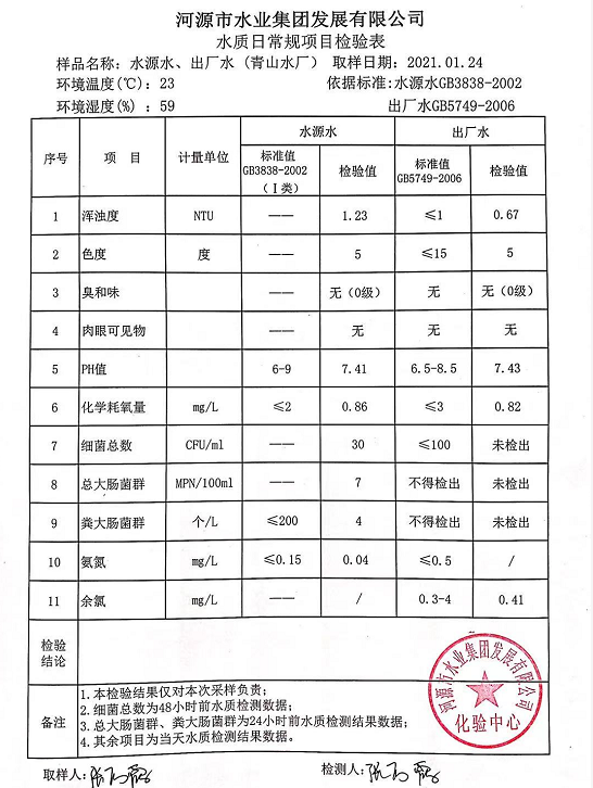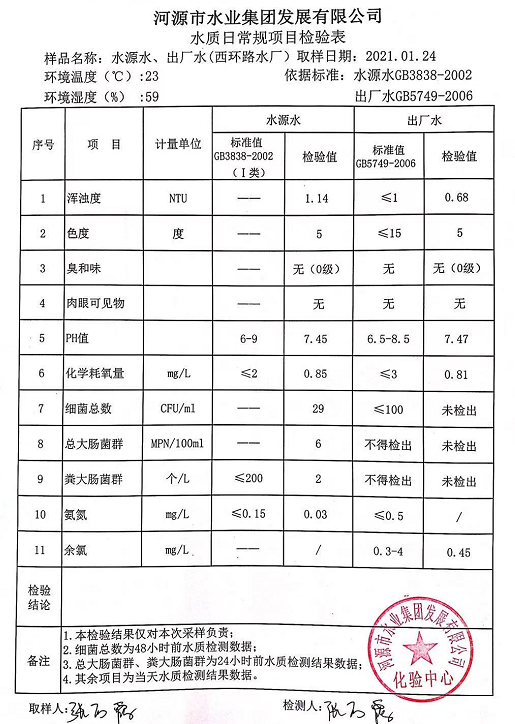 2021年1月24日水質(zhì)檢驗(yàn)報(bào)告