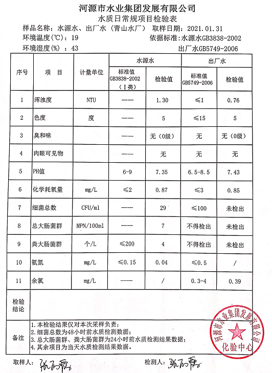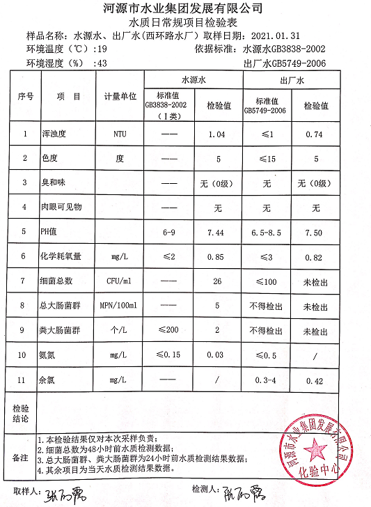 2021年1月31日水質(zhì)檢驗報告