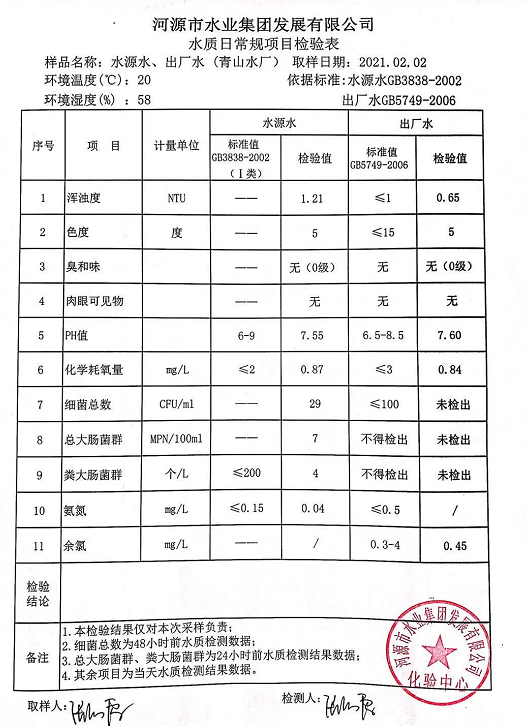 2021年2月2日水質檢驗報告