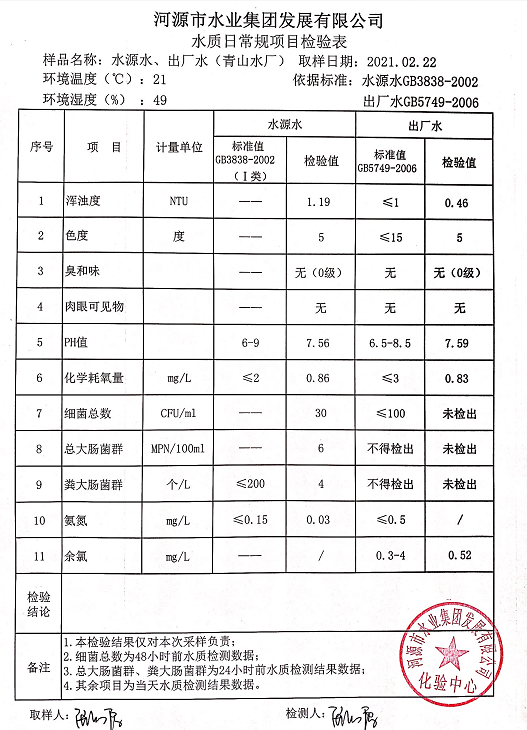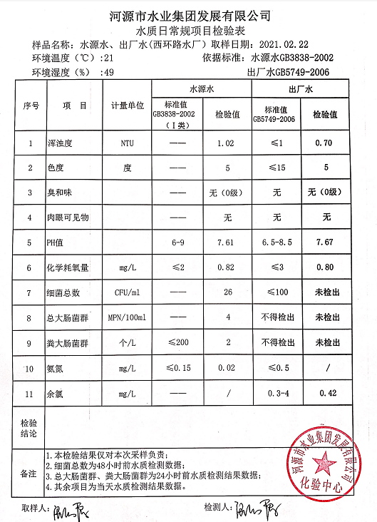 2021年2月22日水質(zhì)檢驗(yàn)報(bào)告