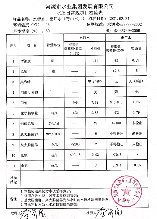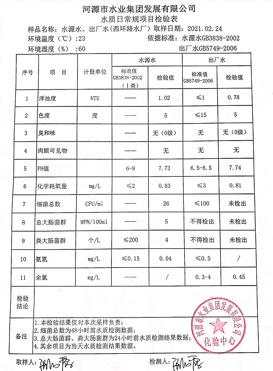 2021年2月24日水質(zhì)檢驗(yàn)報(bào)告