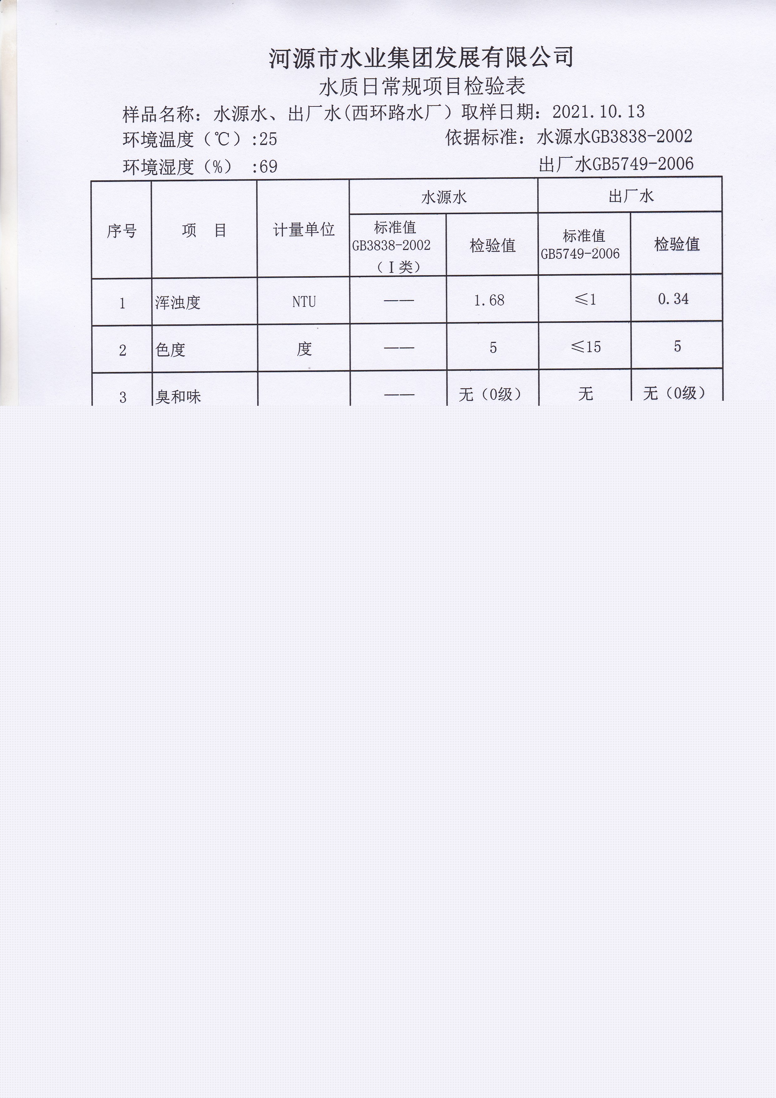 2021年10月13日水質(zhì)檢驗(yàn)報告