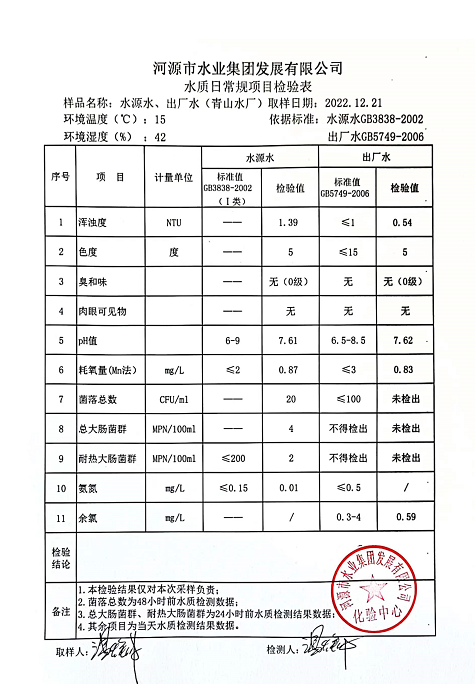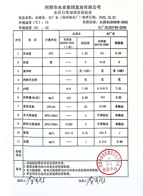 2022年12月21日水質檢驗報告