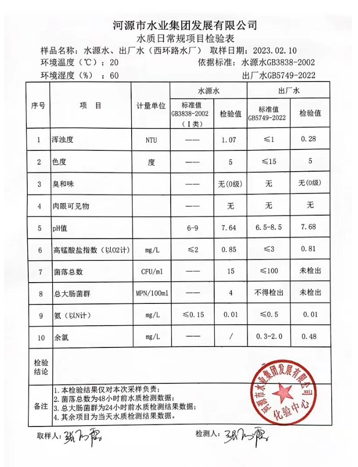 2023年2月10日水質(zhì)檢驗(yàn)報(bào)告