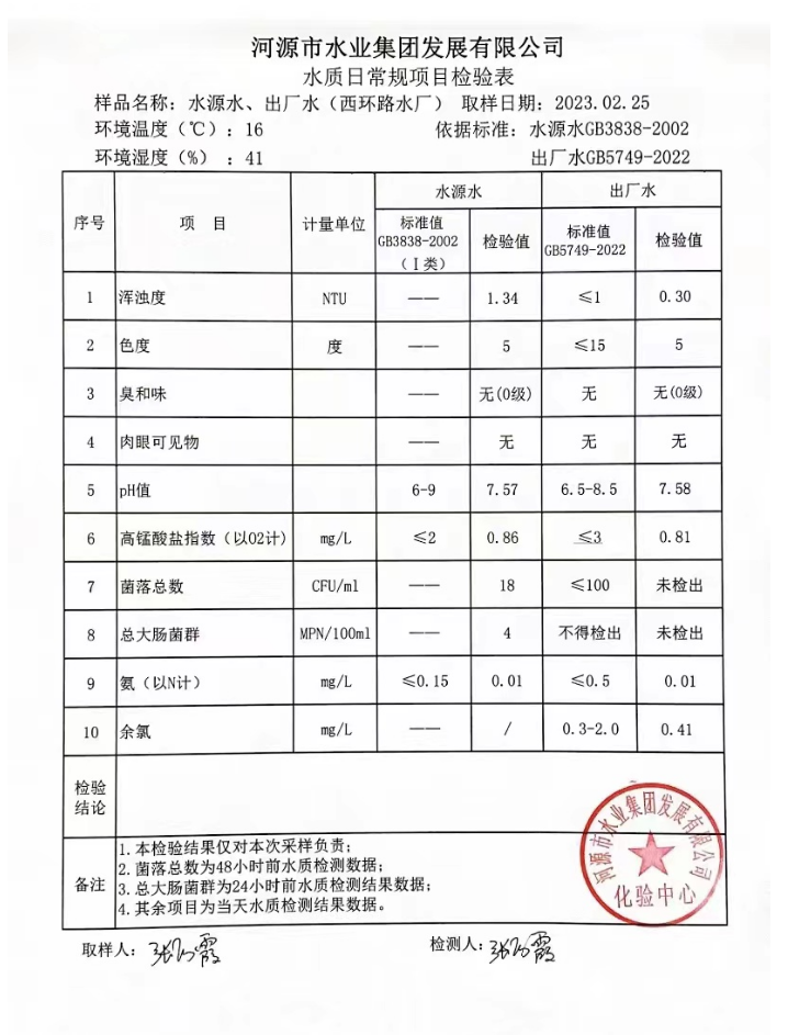 2023年2月25日水質(zhì)檢驗(yàn)報(bào)告