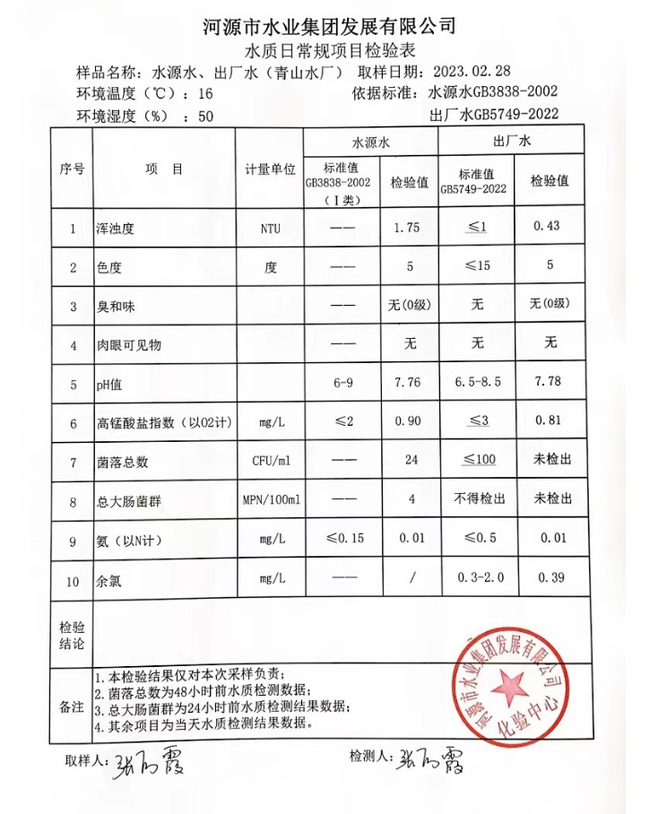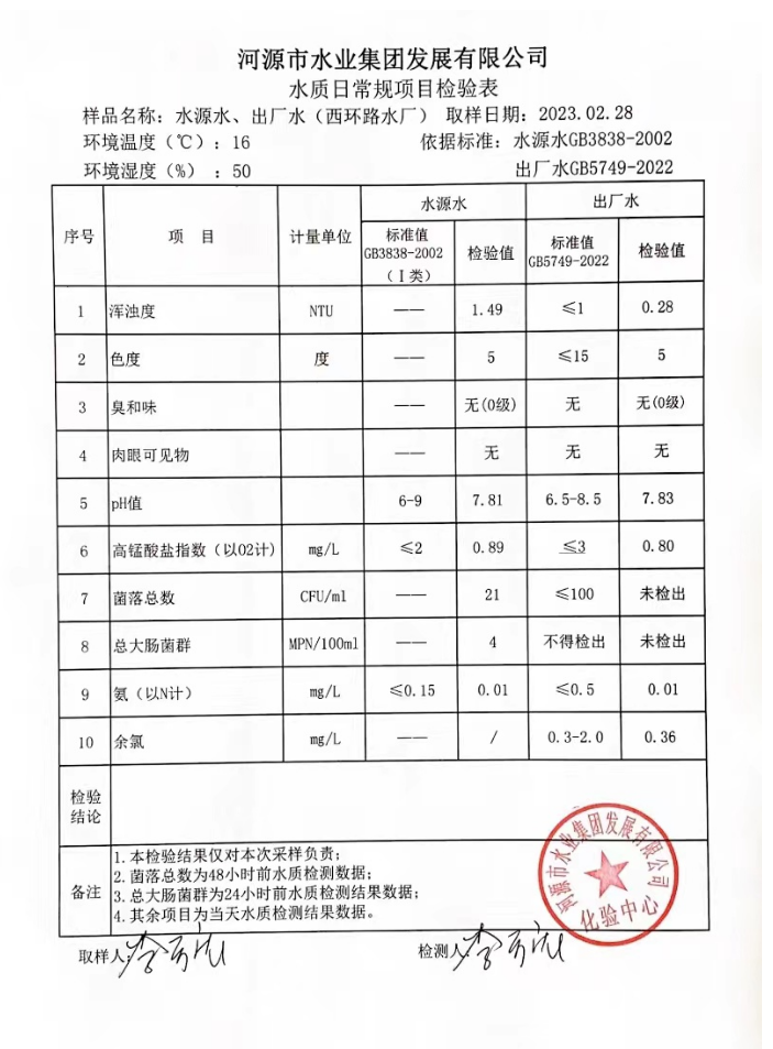 2023年2月28日水質(zhì)檢驗(yàn)報(bào)告