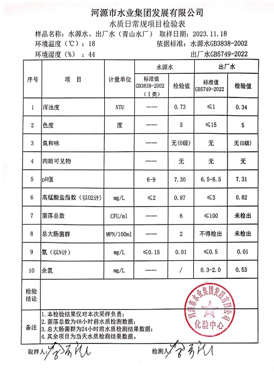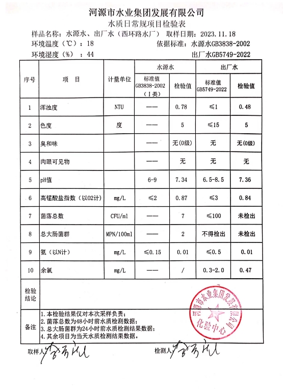 2023年11月18日水質(zhì)檢驗報告 ???