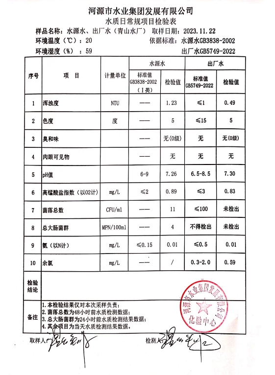 2023年11月22日水質(zhì)檢驗(yàn)報(bào)告 ???