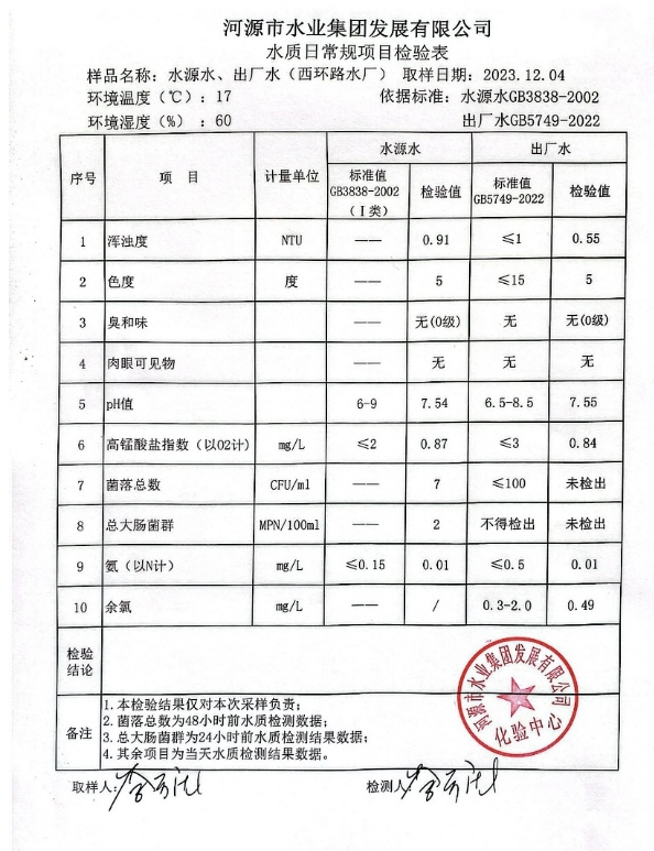 2023年12月4日水質(zhì)檢驗報告 ???