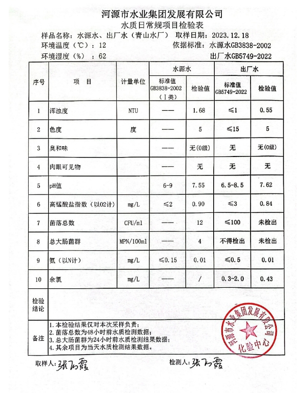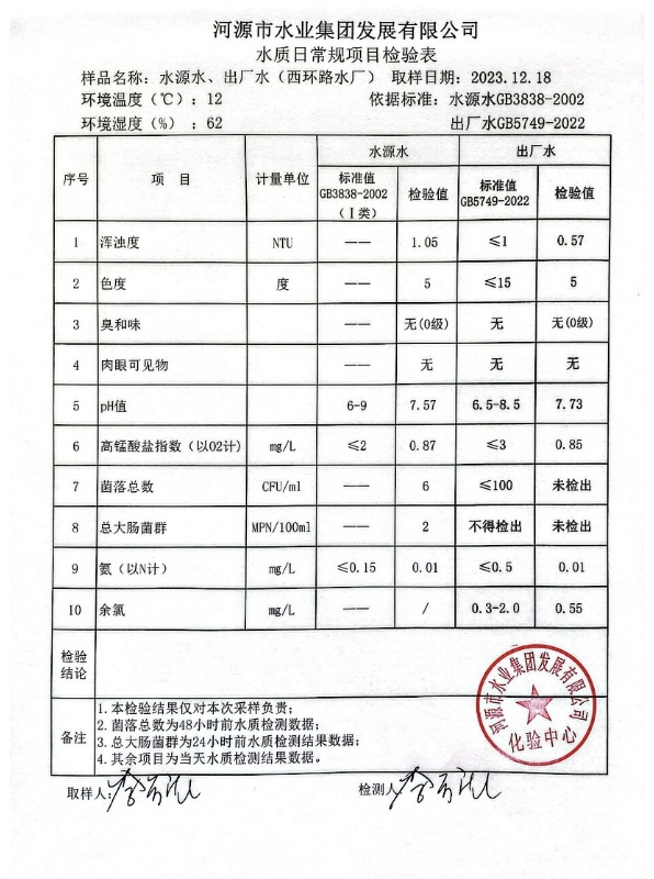 2023年12月18日水質(zhì)檢驗(yàn)報(bào)告 ???