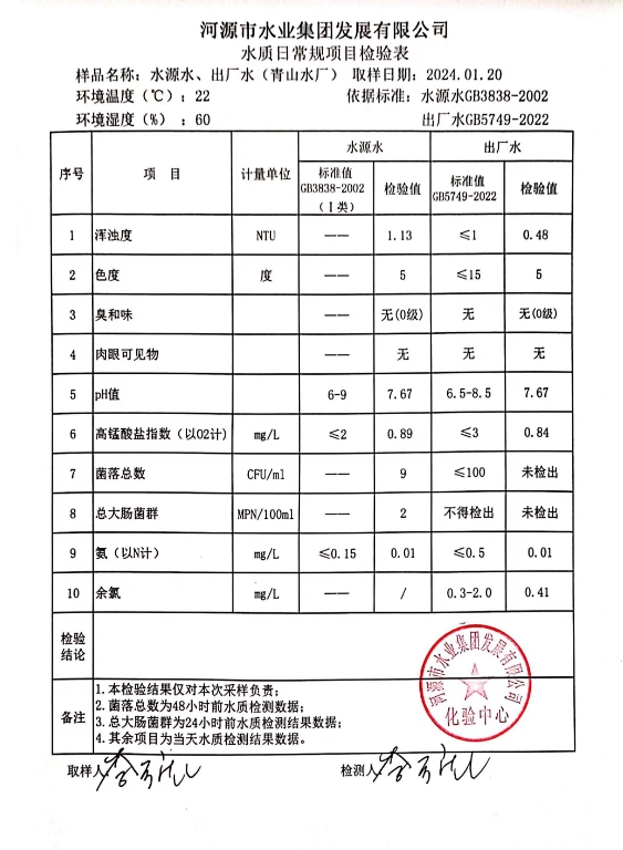 2024年1月20日水質(zhì)檢驗(yàn)報(bào)告 ???