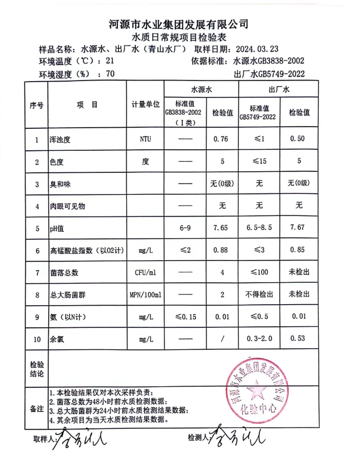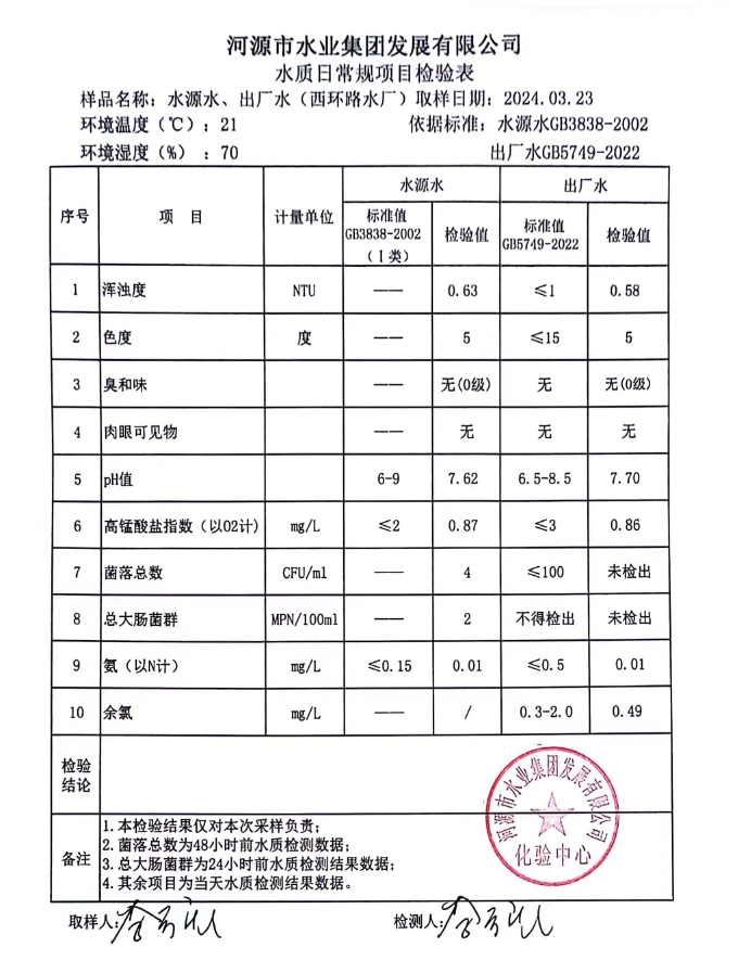 2024年3月23日水質(zhì)檢驗(yàn)報(bào)告