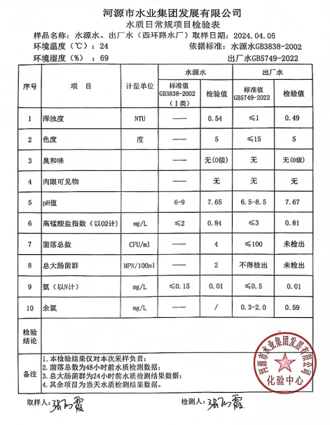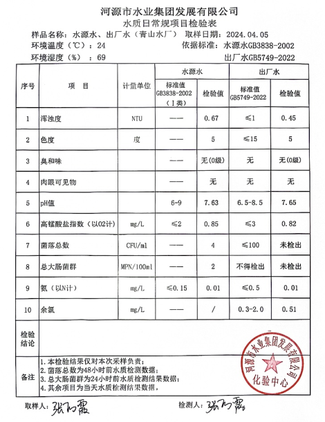 2024年4月5日水質(zhì)檢驗報告