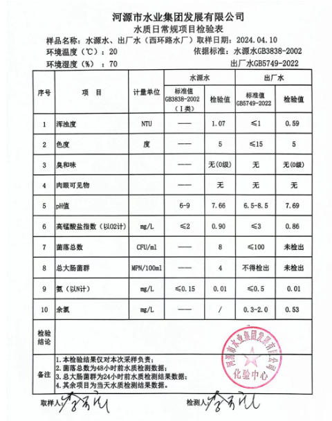 2024年4月10日水質(zhì)檢驗報告
