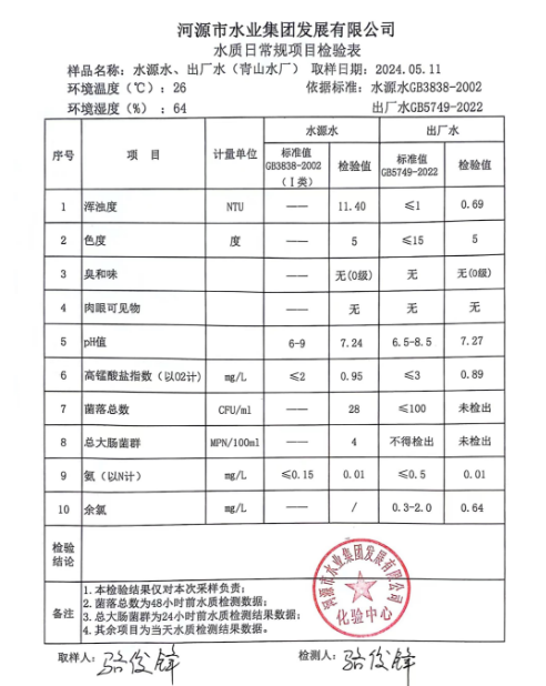 2024年5月11日水質(zhì)檢驗報告 ???