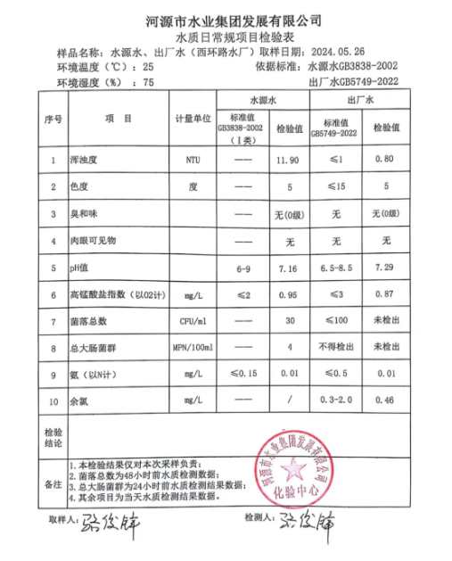 2024年5月26日水質(zhì)檢驗(yàn)報告 ???