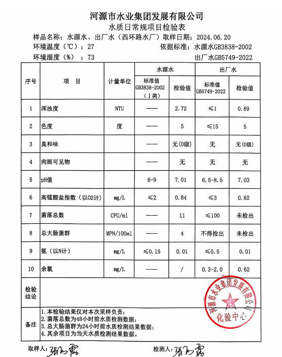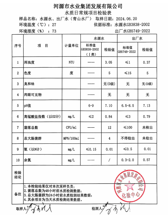 2024年6月20日水質(zhì)檢驗(yàn)報(bào)告