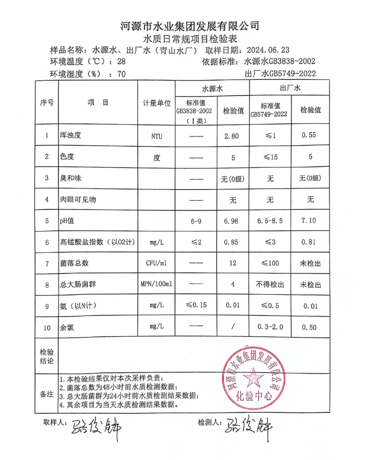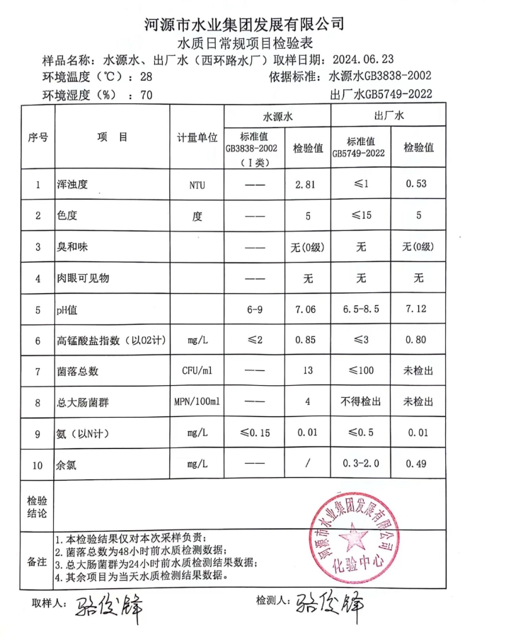 2024年6月23日水質(zhì)檢驗(yàn)報(bào)告