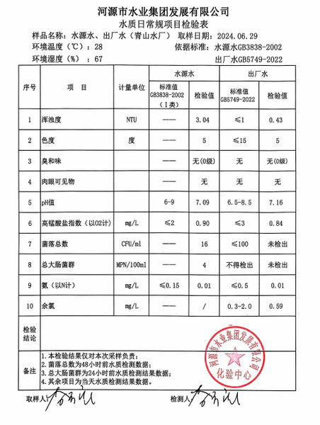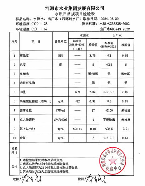 2024年6月29日水質(zhì)檢驗(yàn)報(bào)告