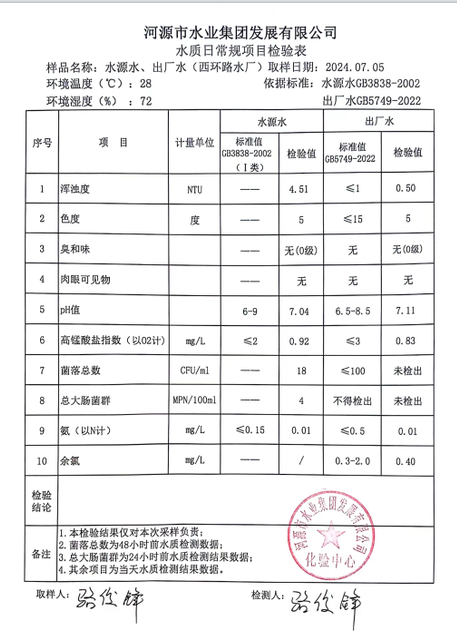 2024年7月5日水質(zhì)檢驗(yàn)報告