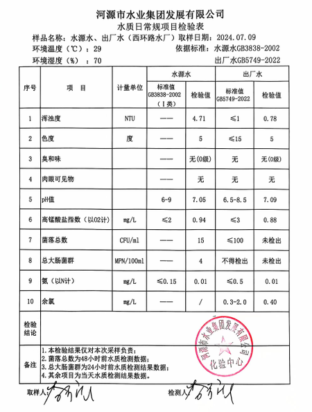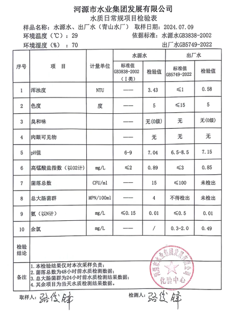 2024年7月9日水質(zhì)檢驗報告