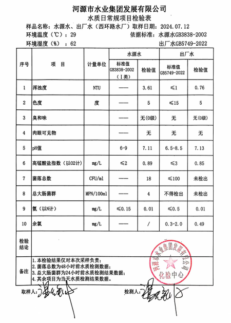 2024年7月12日水質(zhì)檢驗報告