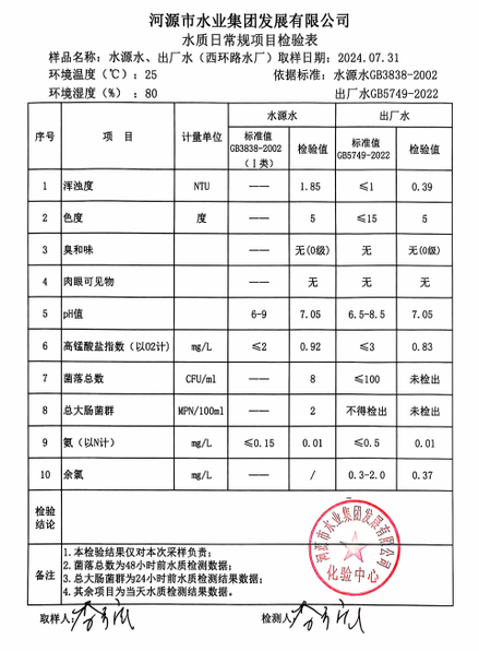 2024年7月31日水質(zhì)檢驗(yàn)報(bào)告