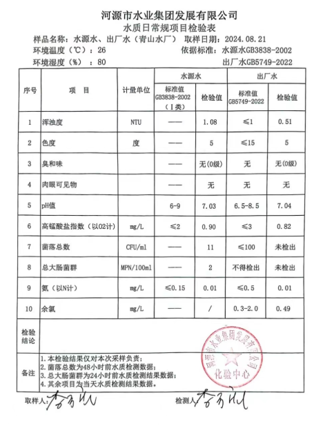 2024年8月21日水質(zhì)檢驗報告