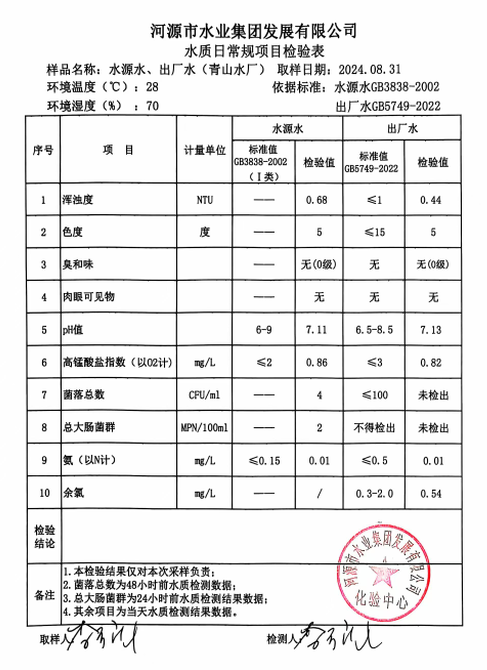 2024年8月31日水質(zhì)檢驗(yàn)報(bào)告