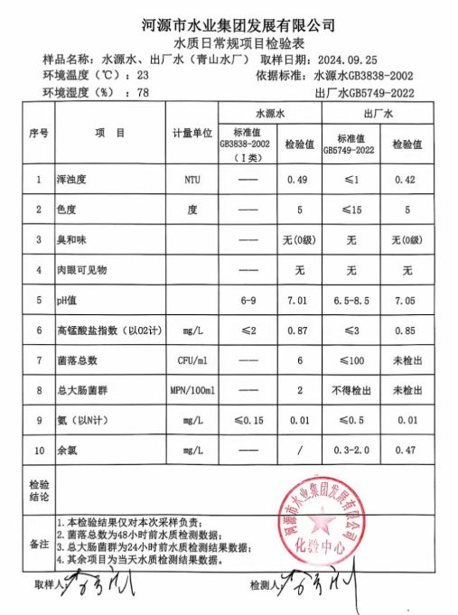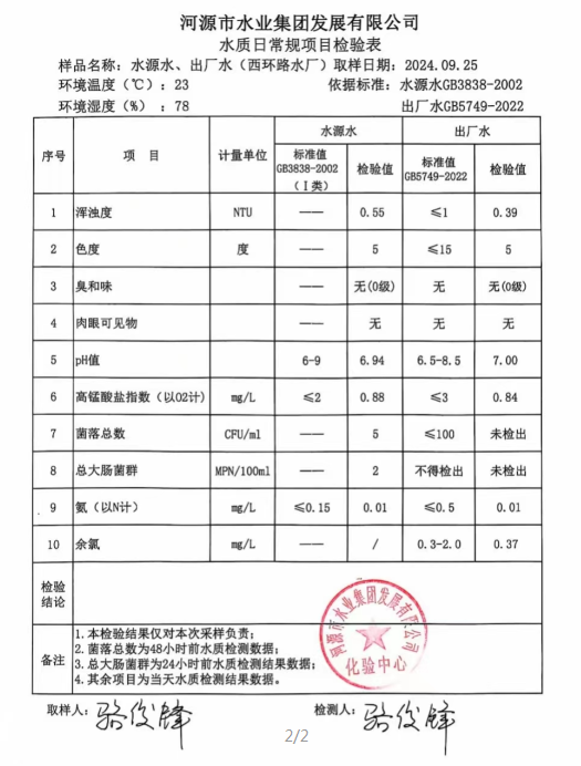 2024年9月25日水質(zhì)檢驗(yàn)報告