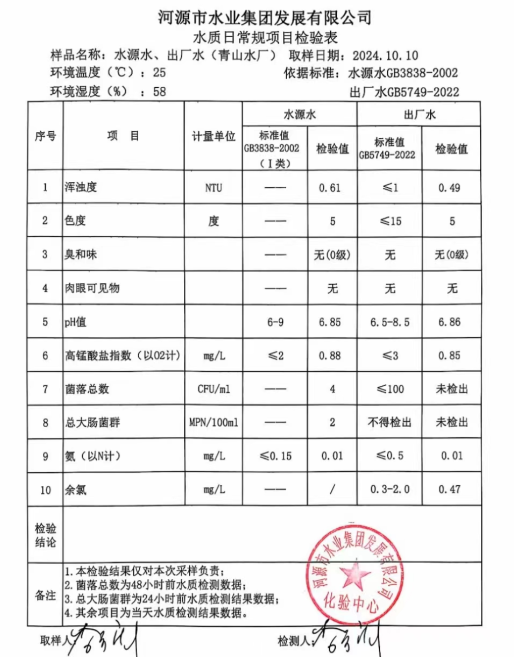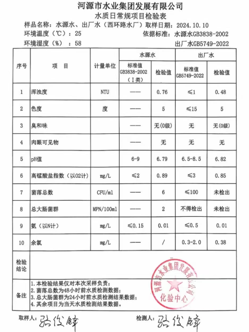 2024年10月10日水質(zhì)檢驗(yàn)報(bào)告
